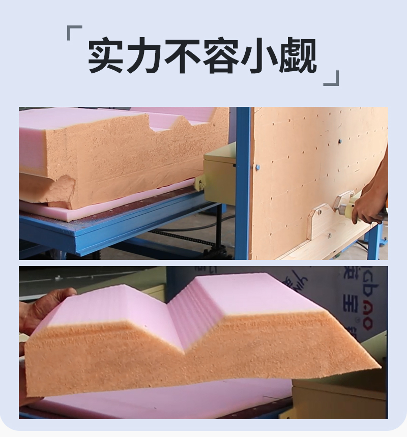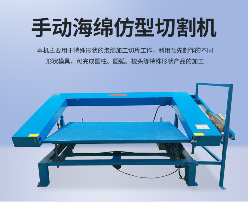 1.本機(jī)用于特殊形狀的泡綿加工切片工作,利用預(yù)先制作的不同形狀模具,可完成圓柱、圓弧、枕頭等特殊形狀的加工。