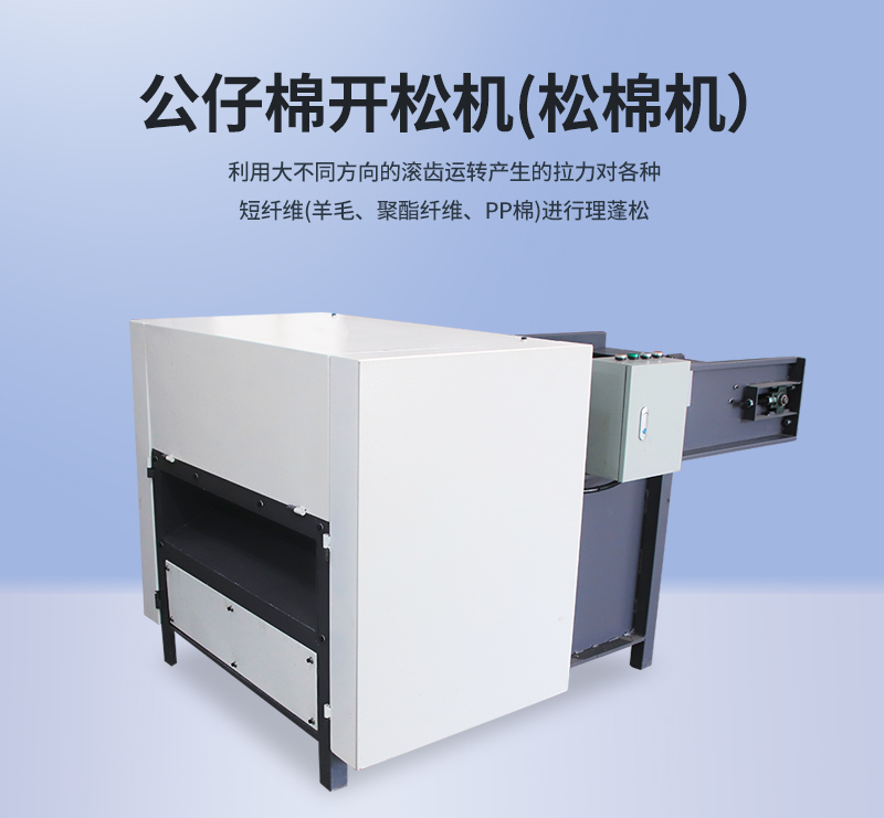 1.公仔棉開松機(jī)又名松棉機(jī),整機(jī)采用全封閉式,外形整齊美觀大方,自帶保護(hù)裝置,操作簡(jiǎn)單安全可靠,吊運(yùn)安裝方便。