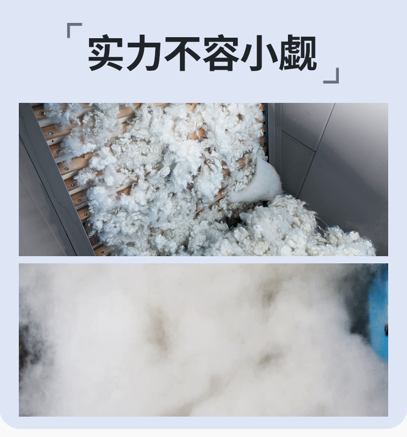 2.利用大小不同方向的滾齒運(yùn)轉(zhuǎn)產(chǎn)生的拉力對(duì)各種短纖維(羊毛、聚酯纖維PP棉)進(jìn)行梳理蓬松,開松率達(dá)99%以上;