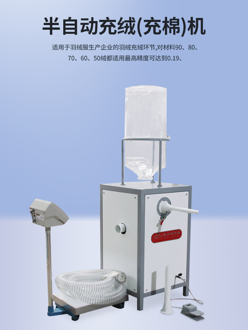 2.適用于羽絨服生產(chǎn)企業(yè)的羽絨充絨環(huán)節(jié),對材料90、80、70、60、50絨都適用。